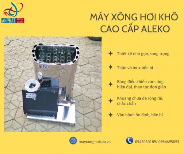 - Thiết bị máy xông hơi khô: Phòng xông hơi khô 1 người chỉ cần sử dụng các loại máy xông hơi công suất từ 3,6kw đến 6kw. Đối với người thích vận động mạnh anh chị đã lựa chọn máy xông hơi khô công suất 6kw đến từ thương hiệu Aleko cao cấp. Model SAC60, công suất 6kw, sử dụng bảng điều khiển cảm ứng AT86 hiện đại.